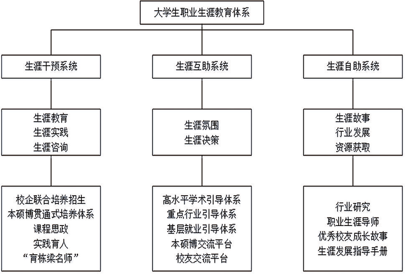 立足为党育人、为国育才的初心与使命,如图1所示,本研究提出了以生涯干预系统、生涯互助系统和生涯自助系统为核心,在此基础上再通过校友将其职业实践中的心得成长以评估反馈的形式反哺到高校招生、培养、就业的各个环节,为学校人才培养提出建设性意见,合力育人。例如,联动校友总会,挖掘校友资源,通过校友座谈会跟踪校友成长发展,实时了解校友的市场适应情况和职业挑战;聘任优秀校友担任学院职业生涯校友导师,为在校生提供行业洞见。从而形成人才培养闭环,打通“招生—培养—就业—校友”各个环节之间的壁垒,希望在此基础上探索工科高校新时代好青年培养体系。