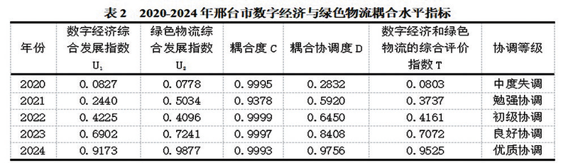 (二)邢台市数字经济与绿色物流耦合协调度分析