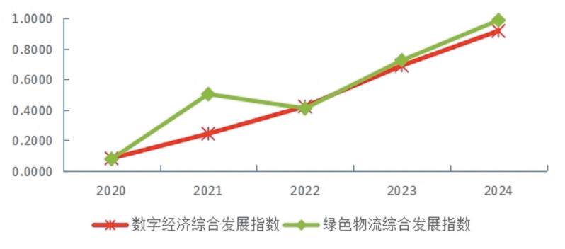图1 2020-2024年邢台市数字经济与绿色物流综合发展水平变化趋势