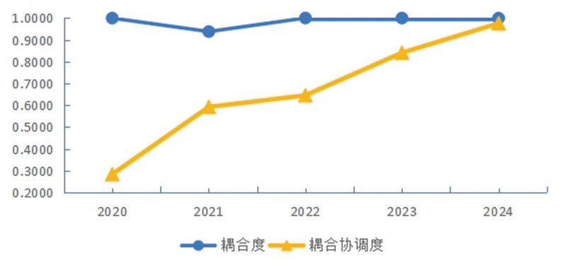图2 2020-2024年邢台市数字经济与绿色物流耦合协调发展状况